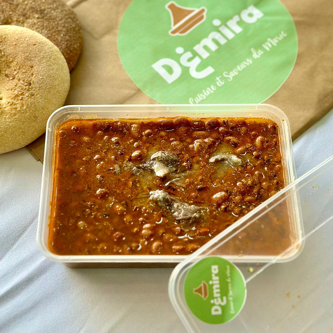 Chez Dghmira, nous mettons à l'honneur les trésors culinaires du Maroc, et le Foul Gnaoua bel Khlii, un plat typique de la ville de Fès, en est un parfait exemple. Ce délicieux mélange de fèves mijotées dans une sauce parfumée et agrémenté de khlii (viande séchée et conservée), est un régal pour les papilles.