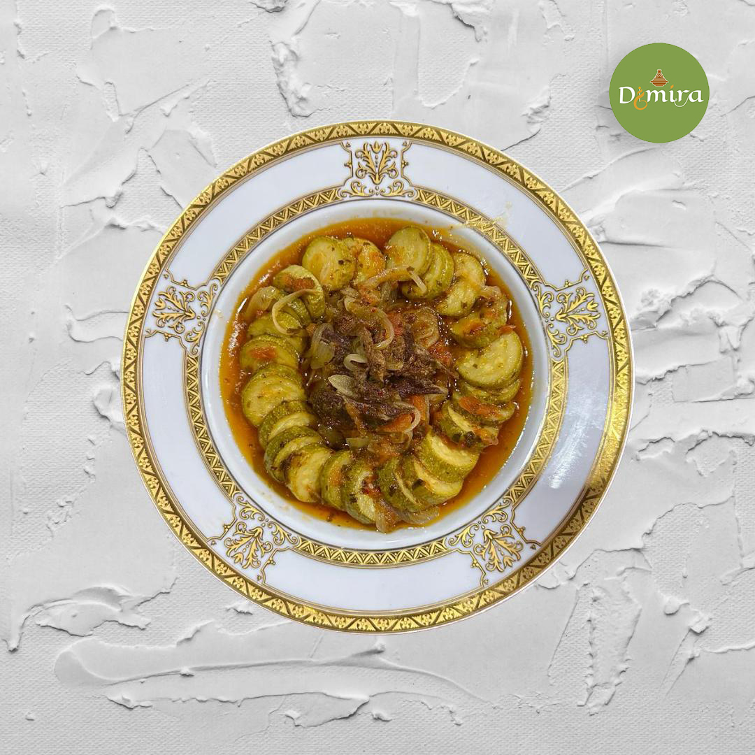 Plongez dans les saveurs authentiques de la cuisine marocaine avec notre Geraa bel Khlii, un plat où la douceur des courgettes rencontre la richesse incomparable du khlii, cette viande séchée et épicée emblématique de nos traditions.