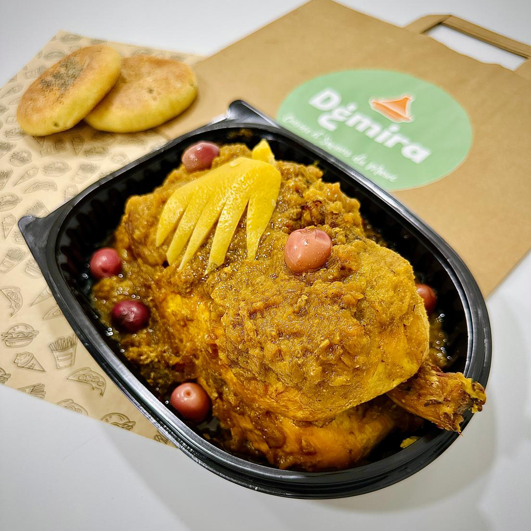 Djaj M’kelli : Le poulet au citron et olives de Dghmira, un classique intemporel ! 🍗 Plongez dans les saveurs riches et réconfortantes de notre Djaj M’kelli, un poulet tendre mijoté lentement avec des olives savoureuses, du citron confit et des épices marocaines. Chaque bouchée est un hommage à la tradition culinaire marocaine, idéale pour partager un repas en famille ou entre amis. ✨
